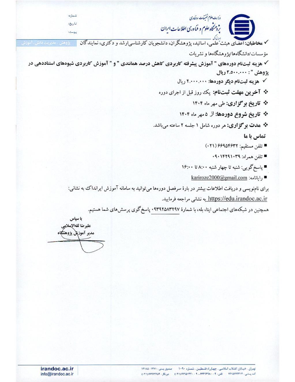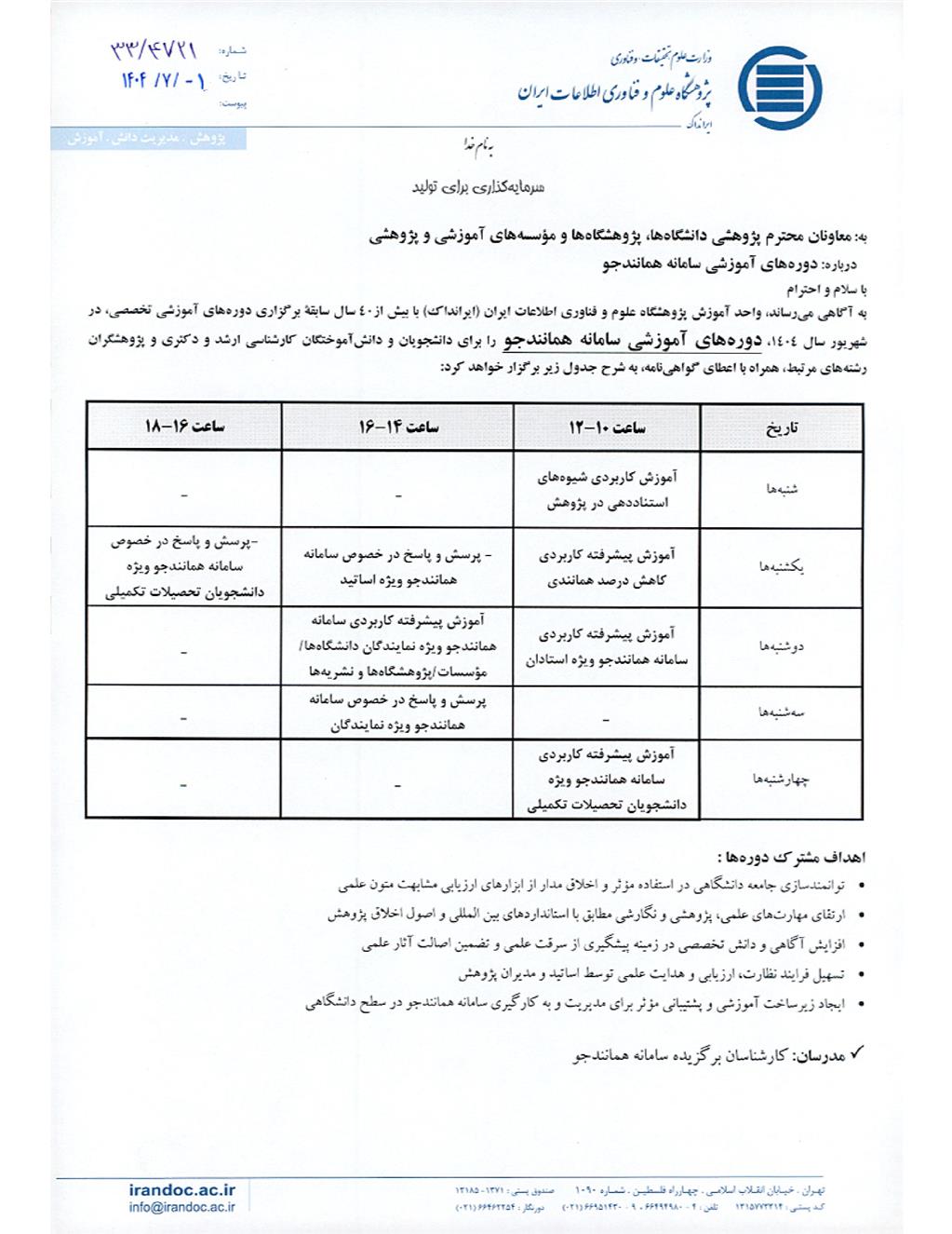 اطلاعیه های آموزشی