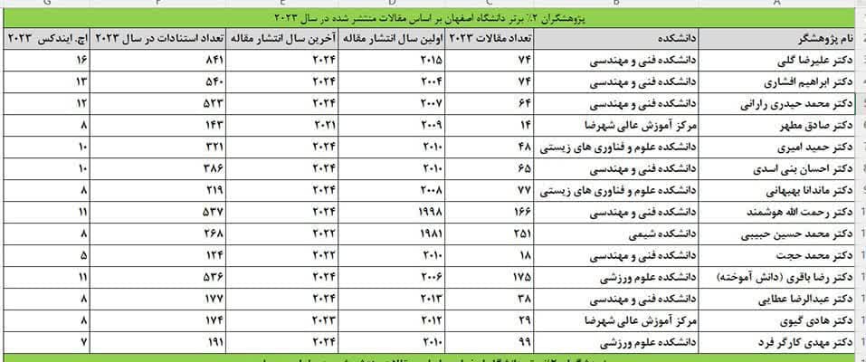 شایان ذکر است، در این فهرست، تعداد 21 عضو هیات علمی و پژوهشگر دانشگاه اصفهان به عنوان پژوهشگر اثرگذار برتر در دو لیست (نویسندگان اثر گذار در سال 2023 و نویسندگان اثرگذار در طول عمر علمی) معرفی شده است.