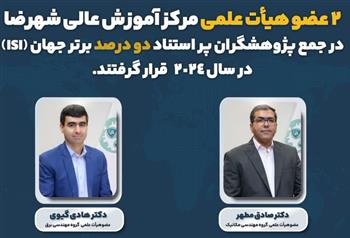 دو پژوهشگر مرکز آموزش عالی شهرضا در فهرست دانشمندان پراستناد دو درصد برتر جهان در سال 2024 قرار گرفتند.