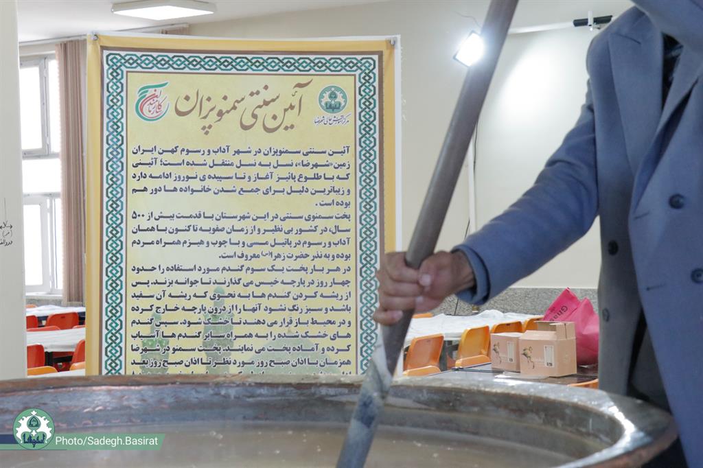 آیین پخت سمنوی سنتی به مناسبت سالروز ولادت حضرت مهدی (عج) در مرکز آموزش عالی شهرضا برگزار شد.